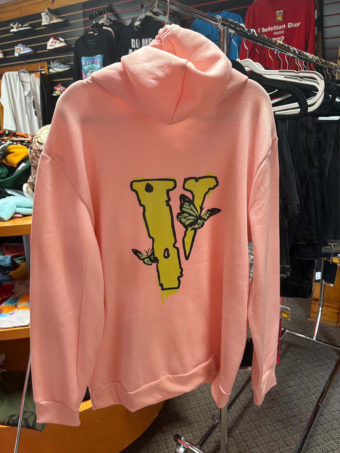 Pink Hoodie with yellow V