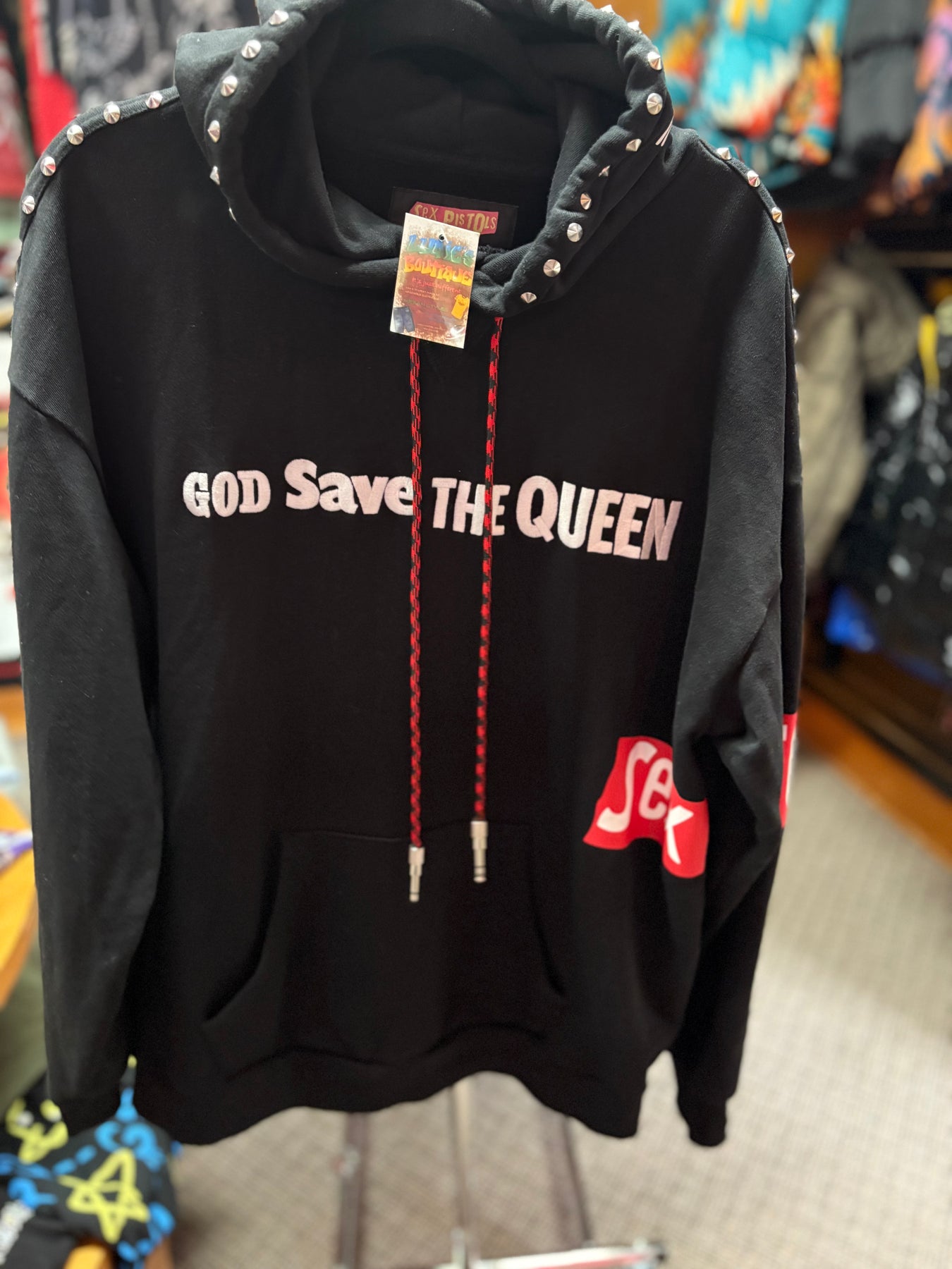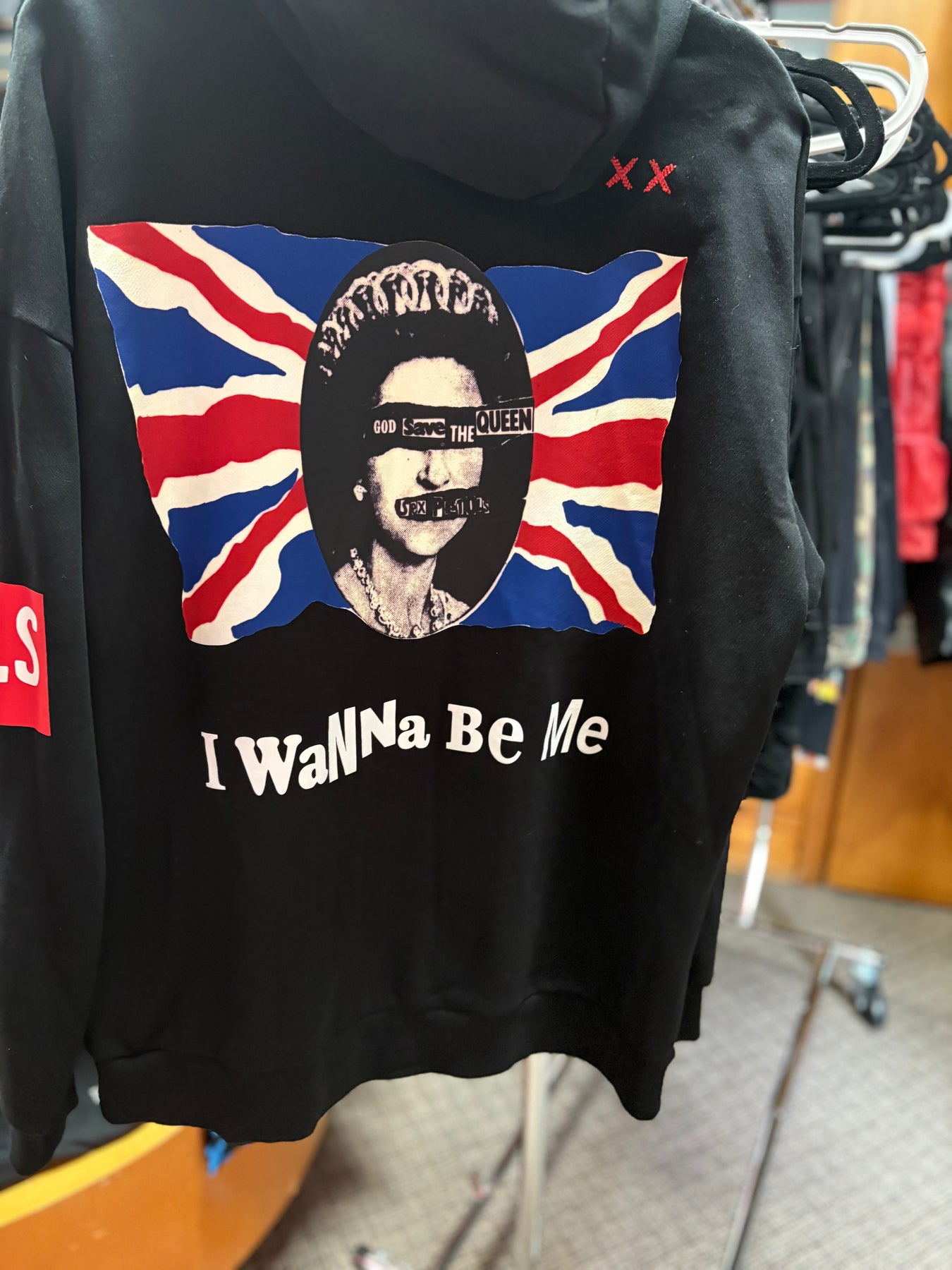 Cult of Individuality Sweater Black hoodie with flag; red, white & blue with lady on the back